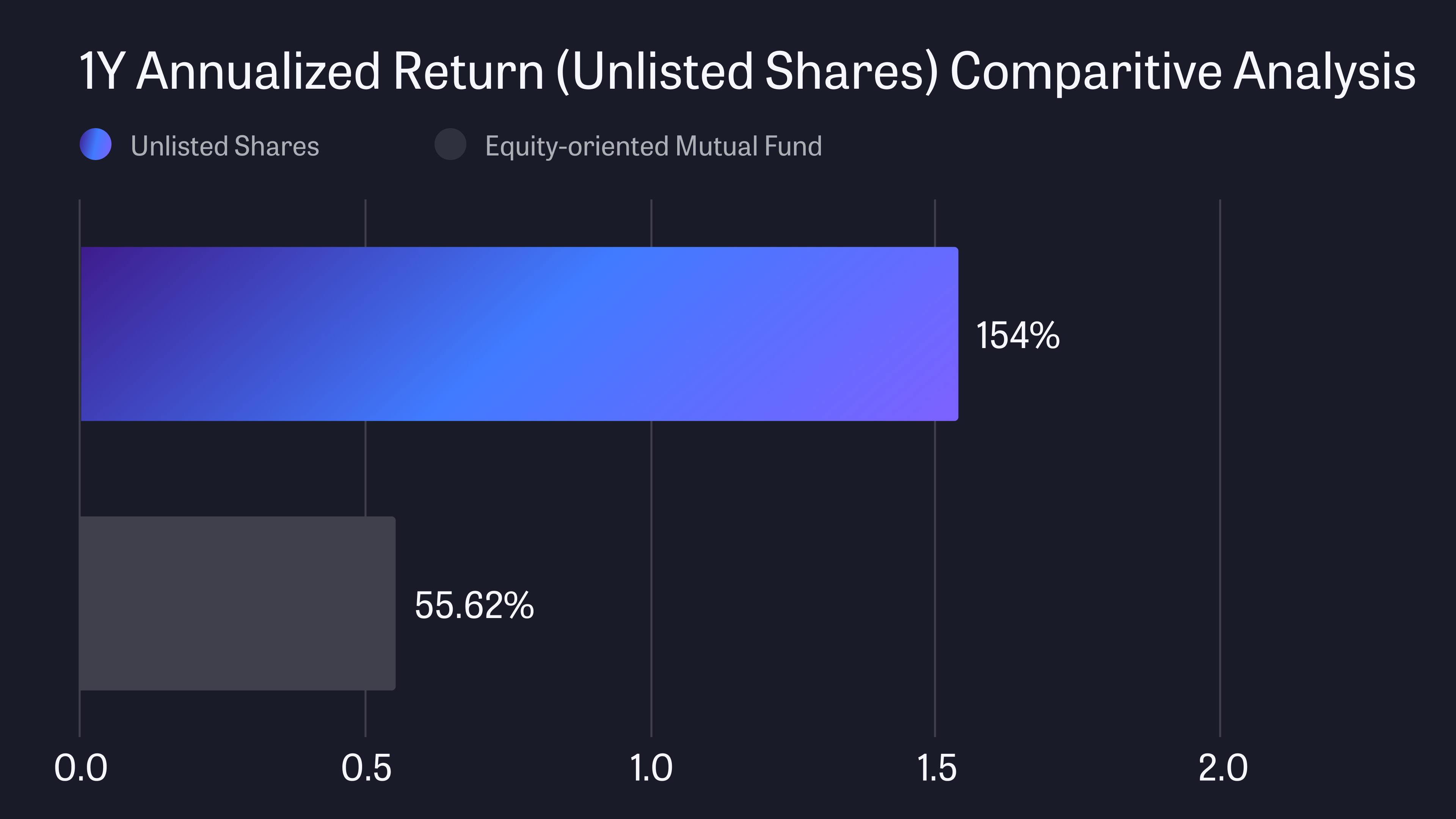 The one-year average annualized returns from those three high-growth Indian unlisted companies were recorded as 154% compared to the 55.62% registered by those above top-notch equity-oriented mutual funds in India.