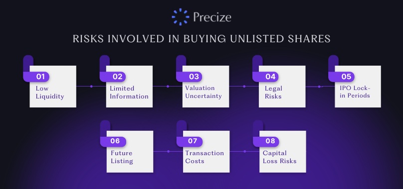 Unlisted shares are not traded on public exchanges, which means they are harder to buy or sell quickly. You may not always find a buyer when you want to exit, and the price you get might not match your expectations.