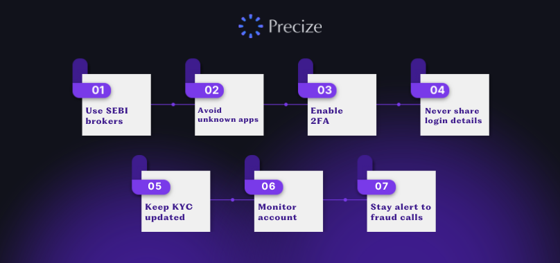 SEBI regulates the stock market in India. Trading with a registered broker ensures your money and shares are handled legally and transparently.