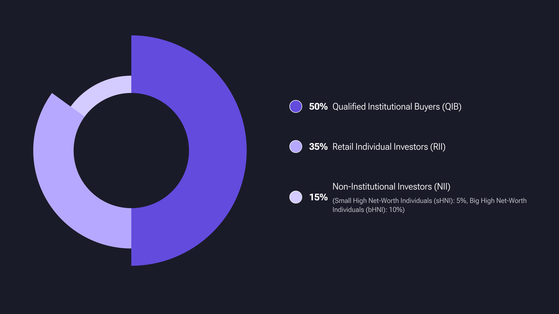 Qualified Institutional Buyers (QIB): Usually, 50% of the shares are reserved.