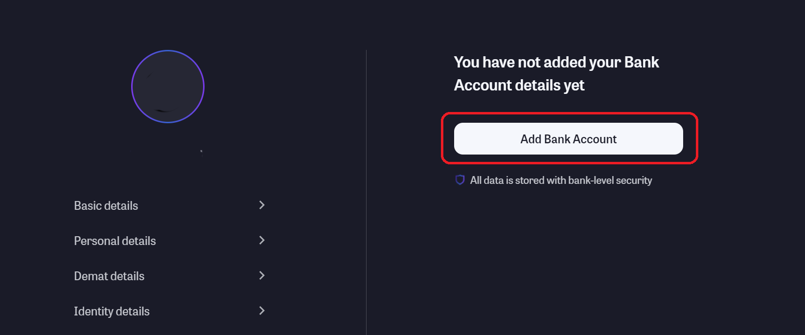 1. To input your bank account number, select "Bank details" and then choose "Add Bank Account." Enter your account number and IFSC code as required.