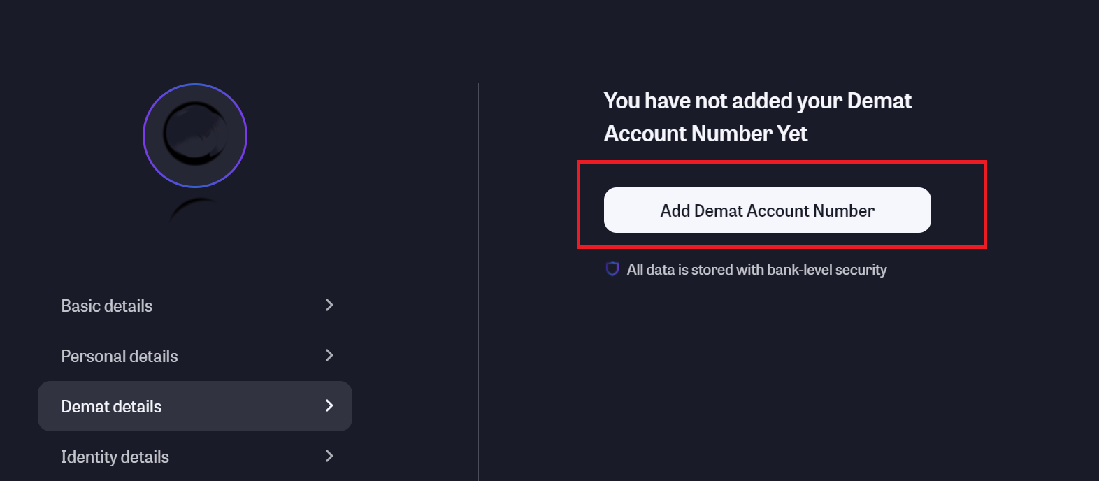 1. To add your demat account number, navigate to "Demat details" and then click on "Add Demat Account Number."