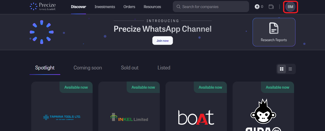 To know how to open an account with Precize, see, How to open an account with Precize?