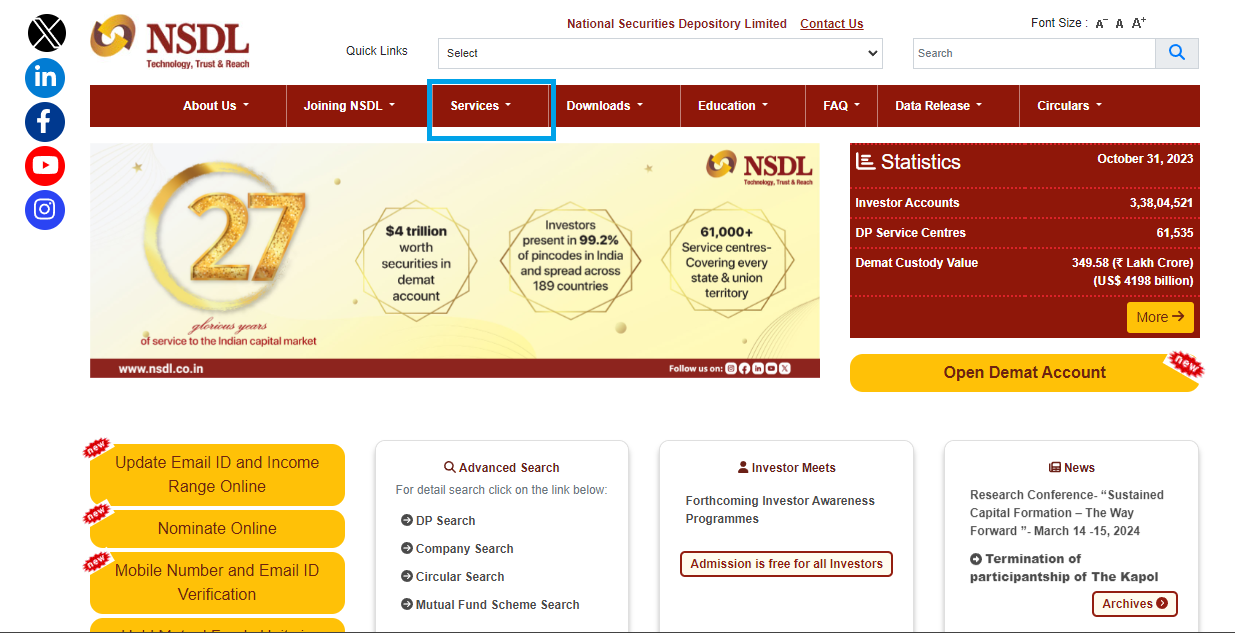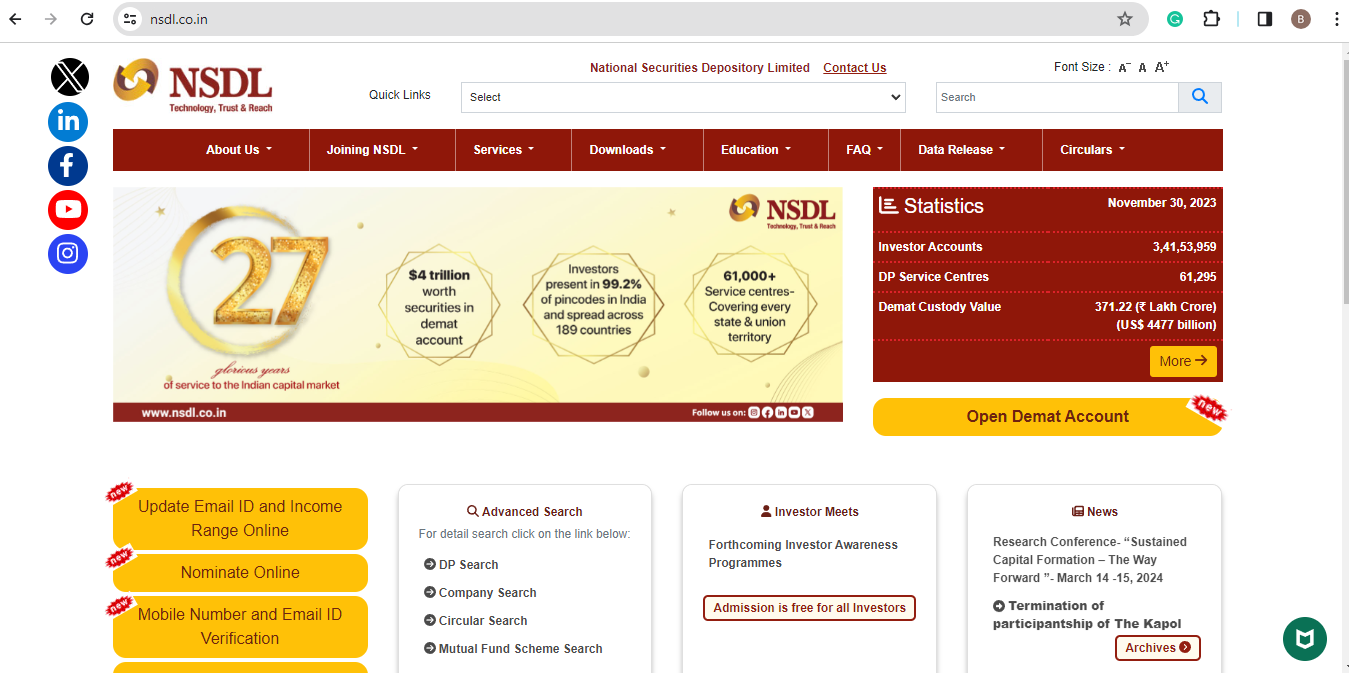 1. Go to the NSDL Official Website: https://nsdl.co.in/.