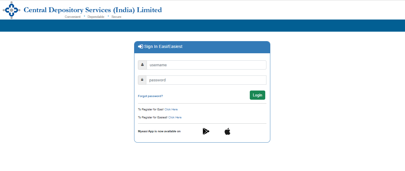 Step 1. Access CDSL easi by going to the CDSL Website and log in to your Myeasi account.