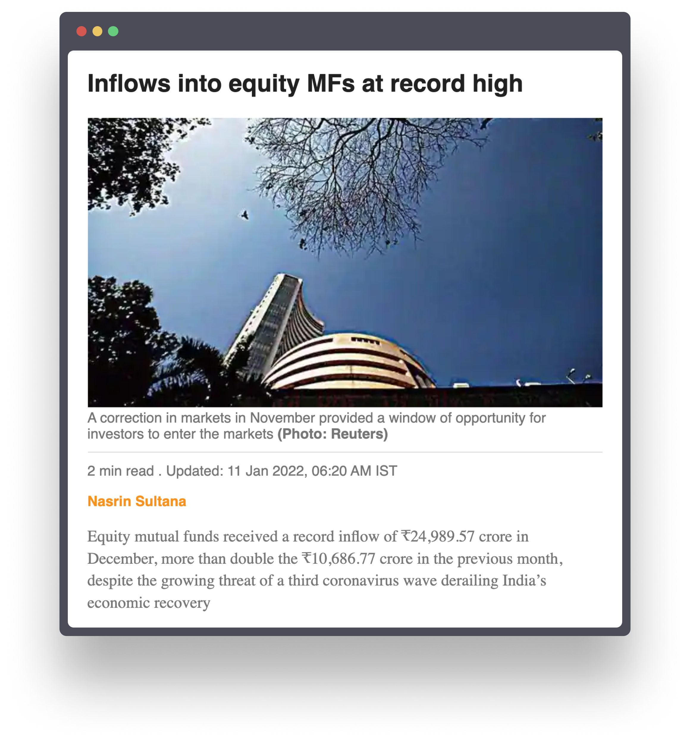 "Kya aapke paas balanced advantage funds nahi hai?" The previous question is a part of one of the most famous Indian advertisements on mutual funds. Even if you are unfamiliar with the advertisement, you would know how enormous the popularity of mutual funds in India is. Especially Equity mutual funds. Before you wonder why I said so, here is a snapshot from the Mint dated January 11, 2022.