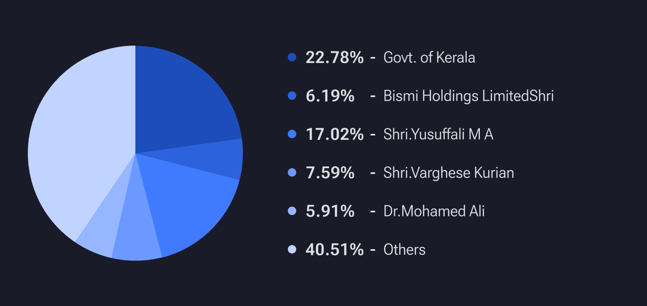 The shareholding pattern of Inkel Unlisted Shares reveals a diverse ownership structure. The Government of Kerala holds a significant portion, accounting for 22.78% of the total shares. Additionally, Bismi Holdings Limited, owned by Shri Yusuffali M A, holds 6.19%, while Shri Yusuffali M A himself holds 17.02%. Shri Varghese Kurian owns 7.59% of the shares, followed by Dr. Mohamed Ali, who holds a 5.91% stake. Other entities hold the remaining 40.51% of shares.