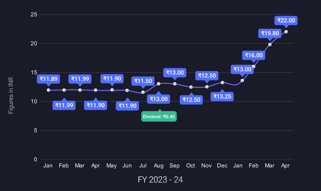 The current Inkel Unlisted share price as of April 22 is at Rs ₹ 24 per share.