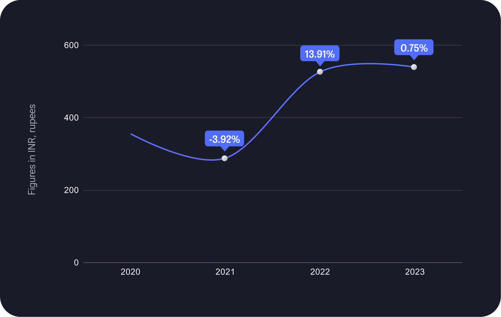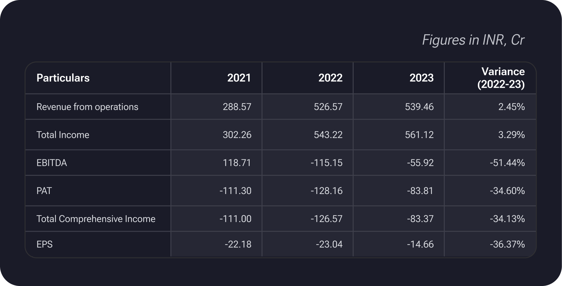 Over four years, the revenue from operations for the specified entity has undergone notable fluctuations. In 2020, the revenue stood at 355.68, witnessing a decrease to 288.57 in 2021. However, a substantial recovery and growth occurred in 2022, with revenue reaching 526.57. The positive momentum continued into 2023, registering a further increase to 539.46. These figures depict a dynamic financial trajectory, showcasing challenges and successes in the entity's operational performance over the specified period.