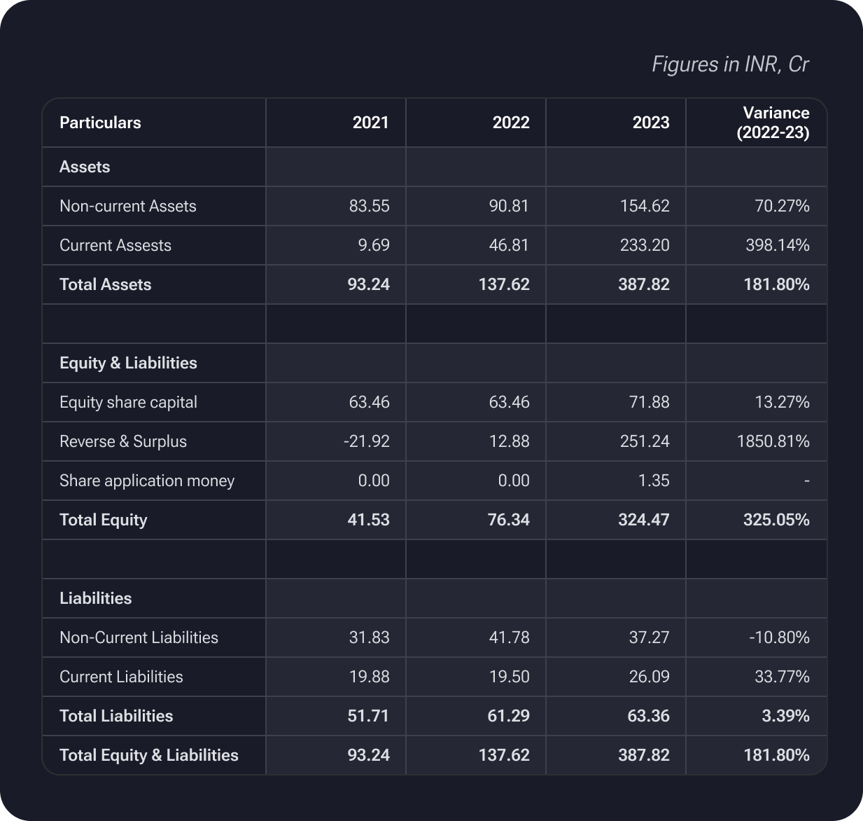 Balance Sheet of Polymatech Electronics: