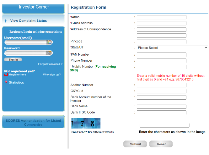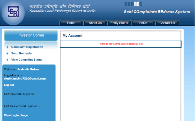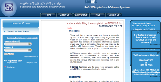 SCORES - SEBI Complaint Redress System.