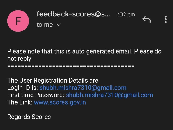 1. A redressal-seeking investor can revisit SCORES by clicking on the link mentioned in the confirmation email.