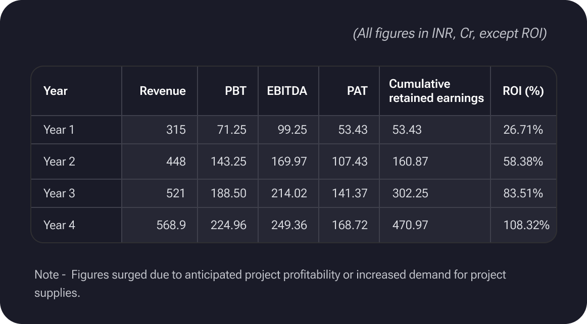 PBT, EBITDA, and PAT is projected to rise for all four years.